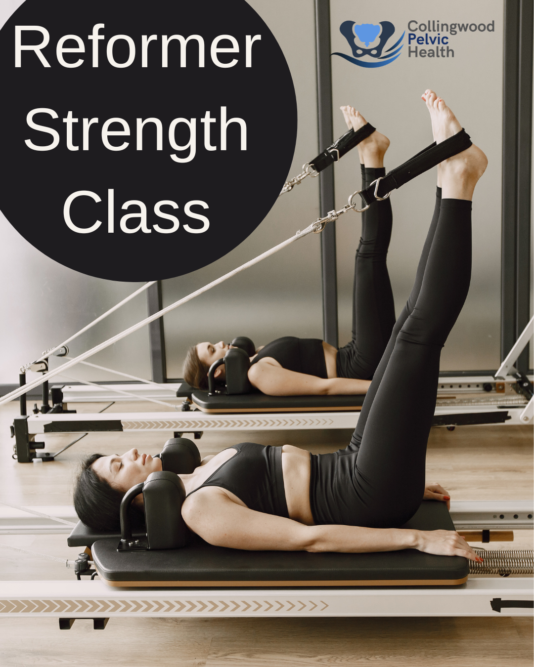 New Physiotherapist-led Reformer Strength Class. This class is designed for anyone who wants to work on strength and conditioning without compromising their pelvic health. The class combines the benefits of pilates reformers and resistance training!
